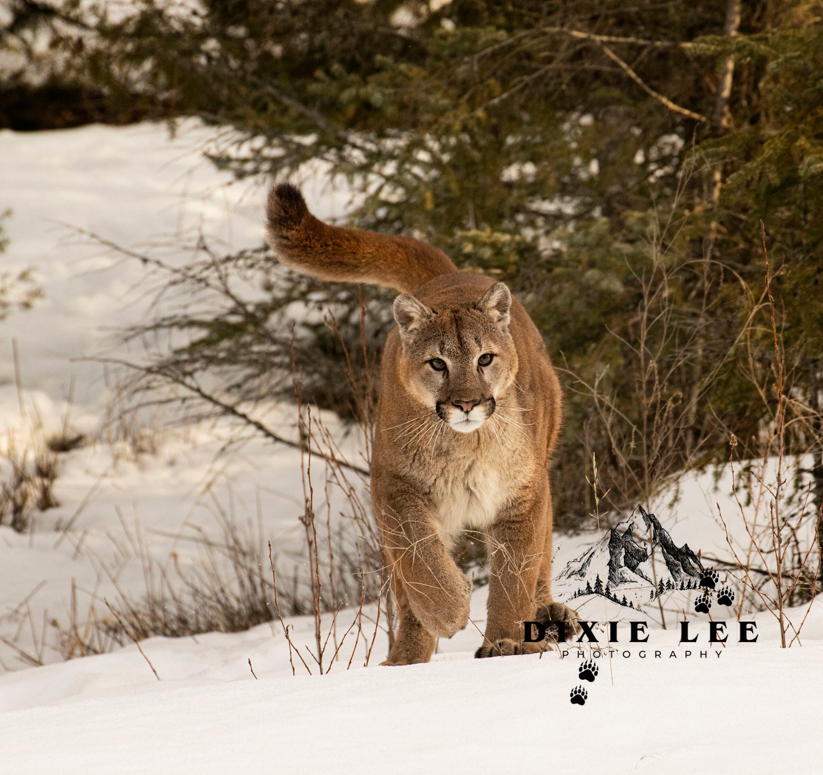 Cougar Lion in snow walk