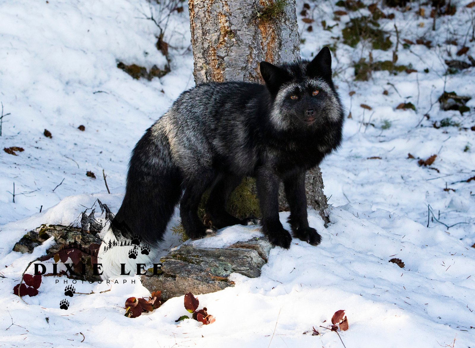 Silver Fox in Front of a Tree